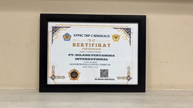 Sementara itu, penghargaan kedua di raih Kilang Pertamina Sungai Pakning dari Kantor Pengawasan dan Pelayanan Bea dan Cukai Tipe Madya Pabean C Bengkalis (KPPBC TMP C Bengkalis) berkat kontribusinya sebagai Eksportir dengan Devisa Terbesar Tahun 2024 di Kabupaten Bengkalis. Apresiasi ini diserahkan langsung oleh Eka Mustika Galih Sayudo, Kepala Kantor Bea dan Cukai Bengkalis sebagai bentuk apresiasi atas kontribusi Kilang Sungai Pakning mendukung peningkatan penerimaan devisa negara melalui aktivitas ekspor produk kilang dan memberikan dampak signifikan bagi perekonomian nasional dan daerah.